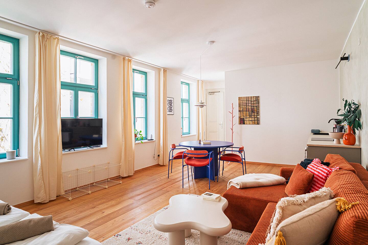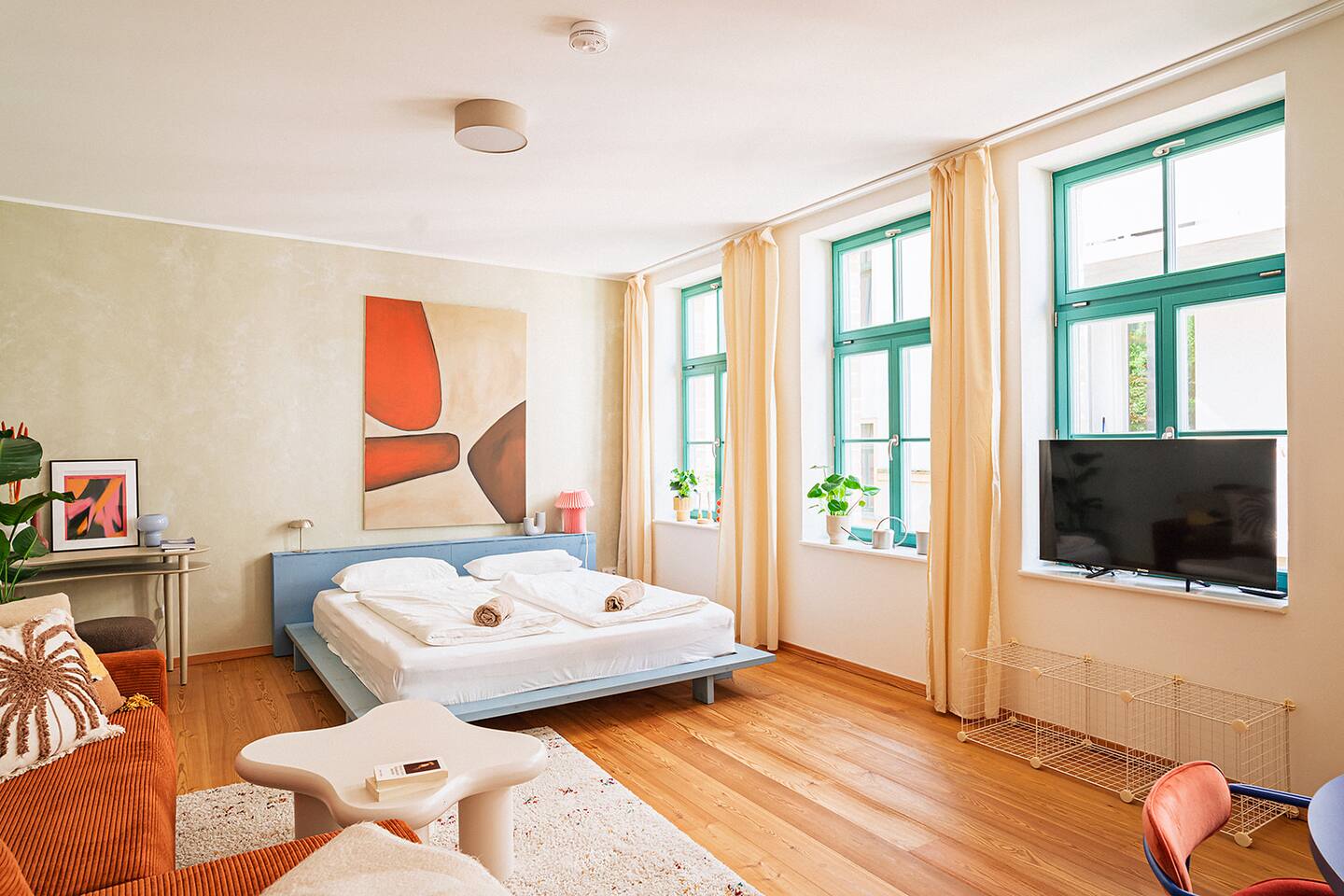 Du bist in 4min (350m) - im Supermarkt (Konsum, Karl-Heine-Straße) 2min (190m) - an der Bahn 1min (20m) - im nächsten Café (Doki im Vorderhaus) 2min (190) - im Restaurant (Tipp: im Westwerk gibt es diverses) Highlights ✓ Handtücher und Bettwäsche inklusive ✓ Voll ausgestattete Küche mit Kaffemaschine ✓ 1,80m Doppelbett mit Memoryfoam ✓ Smart - TV, Musikbox Küche ✓ hochwertige Küche mit voller Ausstattung ✓ Herd ✓ Ofen ✓ Kühlschrank ✓ Geschirrspülmaschine ✓ Kaffeemaschine (Mokkamaster) ✓ Toaster ✓ Wasserkocher ✓ Gläser, Teller, Schalen, Tassen ✓ Besteck inkl. scharfer Messer, Gemüseschäler, Flaschenöffner Badezimmer ✓ wunderschöne, erstklassige Terrazzo-Fliesen ✓ Dusche (Zwei-Brausen-Dusche) ✓ Spiegel ✓ Toilette ✓ Handtücher ✓ Handtuch-Heizkörper ✓ Fußbodenheizung ✓Föhn ✓ Hygieneprodukte (Shampoo, Duschgel, Damenbinden, Tampons) Wohn- und Schlafbereich ✓ großes, hochwertiges Bett ✓ gemütliches, ausklappbares Sofa - weiterer Schlafplatz für zwei Personen ✓ Bücher ✓ Esszimmertisch, neben der Küche, an dem vier Personen Platz finden. ✓ stilvoller Kaffeetisch ✓ kleiner Schreibtisch ✓ Kerzen ✓ Ausgewählte Kunst
